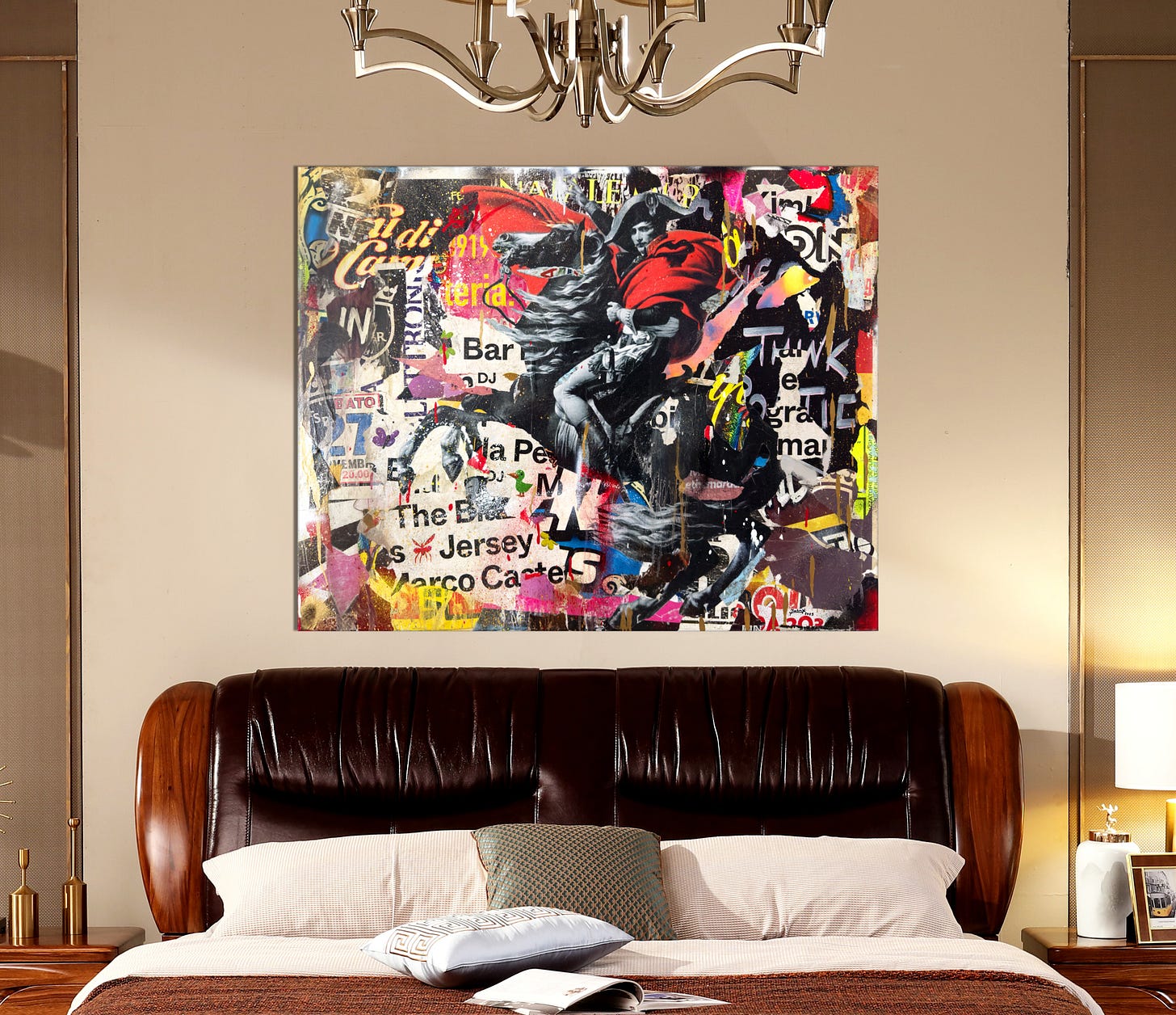 Napoleone, strappato dal suo Olimpo dorato, diventa un’icona ribelle, un manifesto che sfida il tempo. Il vento della rivoluzione lo sospinge, ma attorno a lui non c’è più l’ordine solenne degli dèi della gloria a guidare la sua mano. C’è solo il turbine impetuoso della rivolta, l’energia grezza della trasformazione.